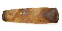 A fine Danish Neolithic thin butted unpolished flint axe in brownish flint c 29 cm long.
