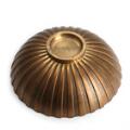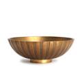 A bronze bowl with vertical, grooved relief decor. Manufactured and marked by Tinos, Ægte Bronce, Made in Denmark. H. 7.7. Diam. 22 cm.