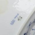 Riflet: bladformet asiet nr. 144, flødekande nr. 61, flødekande nr. 60, asiet nr. 343, peberbøsse nr. 467, saltbøsse nr. 480 og 4 underkopper nr. 2162.