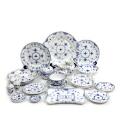 “Musselmalet Helblonde, Halvblonde og Riflet”. En samling serveringsdele og frokosttallerkener af porcelæn, dekoreret i underglasur blå. Royal Copenhagen. (35)