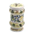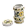 Kellinghusen apotekerkrukke af fajance, dekoreret i farver med blomster og bladværk. 19. årh. H. 23.