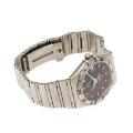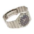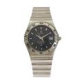 Herrearmbåndsur af stål. Model Constellation, ref. 368.1201. Mekanisk COSC værk med automatisk optræk, kaliber 1120. Blå/grå skive med stål indeks og visere. Integreret Omega lænke af stål samt foldespænde. Omkreds 22 cm. Urets diameter 35 mm. 2000'erne.