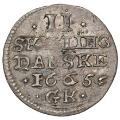 Frederik III, 2 skilling 1665 GK, H 138B - pænt eksemplar