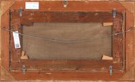 The canvas is relined. In need of a light surface cleaning. Minor crackles.