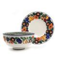 “Golden Summer”. Dybt fad og bowle af fajance, dekoreret med transferprint i form af blomster og frugt. 1739 733 og 1739 831. Royal Copenhagen. Fad Diam. 44. Bowle H. 20. Diam. 38. (2)