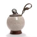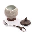 A B&G porcelain jam jar with silver lid, maker H. Grün. Spoon with silver handle included. H. 12.5 cm.