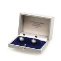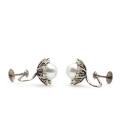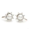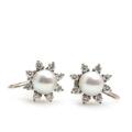 Et par perle- og diamantøreskruer af 14 kt. hvidguld, hver prydet med kulturperle omkranset af talrige brillantslebne diamanter. Vægt ca. 3,5 g. Diam. 1,2 cm. (2)