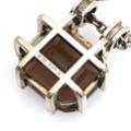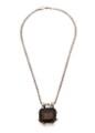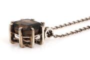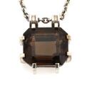 Røgkvartsvedhæng af sterlingsølv prydet med smaragdslebet røgkvarts. Halskæde af sterlingsølv medfølger. Samlet vægt ca. 46 g. Vedhæng inkl. øsken L. 3,2 cm. Halskæde L. 44 cm. (2)