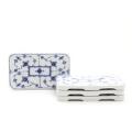 ‘Blue Fluted Plain’. A set of four porcelain serving boards, decorated in underglaze blue. Royal Copenhagen, 1889–1922. 15×9 cm. (4)