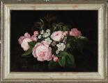 Pink roses. Unsigned. Oil on canvas. 25×34.5 cm.