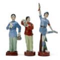 Tre kinesiske unge kadrer, figurer af porcelæn, dekorererede i overglasur. 1970'erne. H. 29–39 cm.(3).