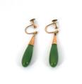 A pair of neprithe ear screws each set with a neprithe drop, mounted in 14k gold. Weight in total app. 7.5 g. L. 3.8 cm. (2)