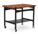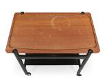 “AT 48”. Serveringsvogn med stel af sortlakeret træ, vendbar plade af massiv teak. Udført hos Andr. Tuck. H. 60. L. 77. B. 48.