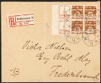 Galla & Jessen. 10 øre block of 6 on rec-cover obliterated by starcancellation Kh.K1 sent to Frederikssund. [ ✉ ]