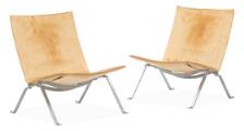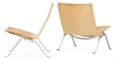 “PK 22”. Et par lænestole af stål. Sæde, og ryg betrukket med patineret naturskind. Formgivet 1956. Udført og mærket hos Fritz Hansen, 1989. (2)