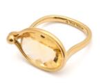 A “Savannah” citrine ring set with an oval-cut citrine, mounted in 18k gold. Weight app. 6.5 g. Front 1.5×2.4 cm. Size 55.