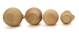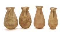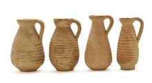 Four Roman terracotta pitchers with ribbed body. 2nd-4th century AD. H. ca. 17 cm. (4)