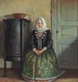 A woman from Laesoe in trditional dress. Signed with monogram. Oil on canvas. 49×46 cm.