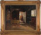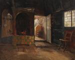 “Vierländer diele” (interior with a fire place). Signed A. Ruths. Oil on canvas. 51×63 cm.
