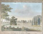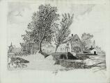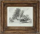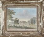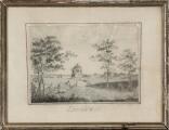 “Udsigt til Classens Hauge”. View to Classen's Garden. Signed A. C. Larsen 1834. Silk embroidery and watercolour. Visible size 31×39 cm. And two embroidery pictures, 19th century. Image 16×21 og 21×28 cm. (3)