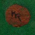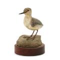 Figur af udskåret og bemalt træ i form af klyde unge. Bund brændetmærket KR. H. 13 cm.