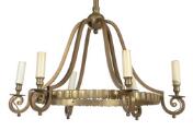 Skønvirke lysekrone af bronze med seks blus. Ca. 1910. H. 93. Diam. 65.