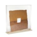 “Bit, from Pages and Fuses”. Sign. Robert Rauschenberg 74, 9/33. Mixed media/ håndgjort papir i original plexiglaskasse. Udgivet af Gemini G.E.L., Los Angeles. Bladstørrelse 46×45. Kasse måler 59×60×16.