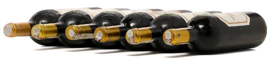 Cellar-worn bottles with scuffed and soiled labels. One bottle with scuffed capsule. Otherwise good condition.