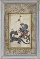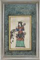 Four Persian miniature paintings, gouache and ink on paper depicting horseman killing a dragon, official with a document, warrior with a flag and figures in a palace. 19/20th century. Size without borders 18×12, 17×11, 20×12 and 16×10 cm. (4)