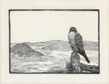 En falk. Usigneret. Træsnit på japanpapir. Lysmål 9×12.