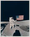 [Apollo 14] Alan Shepard holding the US flag at Fra Mauro Base. Edgar Mitchell, 31 January - 9 February 1971, EVA 1. Printed 1971. Vintage chromogenic print on fiber-based Kodak paper [NASA AS14–66-9232]. 20.3×25.4 cm (8×10 in), with “A Kodak Paper” watermarks on the verso (NASA / Kodak, Rochester, NY).