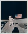 114:43:55 Shepard: Okay. (To Mitchell) Take a picture this way (facing the 16-mm camera) and then we’ll swing it (the US flag) around so they can see it in the television. 114:44:01 Mitchell: All right. 114:44:02 McCandless (Mission Control): Okay we can see it... 114:44:03 Shepard: Okay, let me turn it around a little (garbled) here. (Long Pause) Okay. (Pause) There we go. (Pause) 114:44:39 Mitchell: I think I’m still too close to you, Al. 114:44:42 Shepard: Look out for the LM leg. 114:44:45 Mitchell: Yeah. (Pause) 114:44:50 Shepard: Okay. And when you’re finished (having his picture taken), you can flop it around so they can see it (the US flag) a little better.