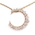 Diamantvedhæng af 18 kt. rosaguld i form af halvmåne prydet med talrige old mine-cut diamanter på i alt ca. 1.60 ct. Farve: F-H. Klarhed: VS-P. Halskæde af 18 kt. rosaguld medfølger. Vægt ca. 5 g. Vedhæng diam. 23 mm. L. 43–45 cm. (2)