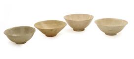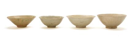 Four Qingbai bowls, conical form on a low retracted footrim. Song dynasty (960–1279). Diam. 16–18.5 cm. (4)