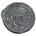 Trankebar, Christian V , blykas 1687, cf. UBJ 162, Sieg 38.1, cf. KM 98.1 - storartet eksemplar af den yderst sjældne variant præget med lille reversstempel