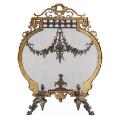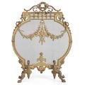 Kaminskærm/gnistfang af messing af forgyldt bronze og trådnet. Louis XVI form, 19. årh.s slutning. H. 83. B. 64.
