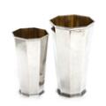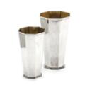A larger and smaller octagonal parcel-gilt silver vase. Made in 1953. Weight app. 1050 g. H. 18.5 and 22 cm. (2)