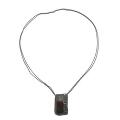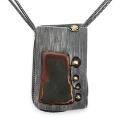 A oxidized sterling silver necklace set with black/brown gemstone and gold. Weight app. 69 g. L. app. 88 cm.