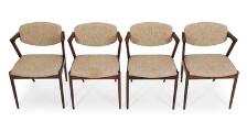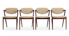 A set of four armchairs with rosewood frame. Seat and tilt-back upholstered with fleckquered wool. Model 42. Manufactured by Schou Andersen. (4)