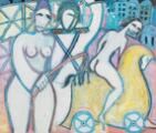 “Rester fra Femmøller strand”, 1982. Sign. på bagsiden Ulrich Kvist 1982 med dedikation. Olie på masonit. 60×70.