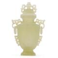 A Chinese 20th century baluster carved jade vase and cover with drop ring handles, profiled lid. H. 13.5 cm.