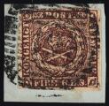 1853. 4 RBS Thiele II, blackbrown. Copy on small piece with scarce insurrection cancel 19 “KIELER BAHNHOF”. Opinion CAM [ 1IIa ] [ Δ ]