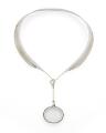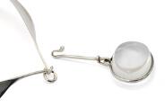 A neck ring with a detachable pendant set with a polished rock crystal, mounted in sterling silver. Design no. 160. Pendant L. 7.5 cm. Inside diam. app. 12.7 cm. Georg Jensen after 1945. (2)
