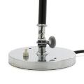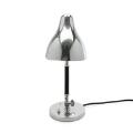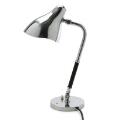 A chromed metal table/wall lamp with with conical, sweeping shade. Round base with switch, stem partly covered with black vinyl. H. 41 cm.