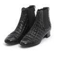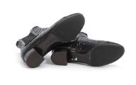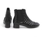 A pair of ancle boots of black quilted leather with logo on the toes, elastic at the sides and small heel. Size 37. Heel height app. 3.5 cm.