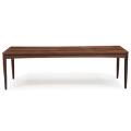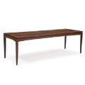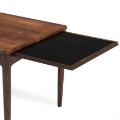 Rectangular rosewood coffee table with profiled rail. One end with extension leaf with black formica. H. 52,5 cm. W. 58 cm. L. 170./210 cm.
