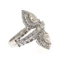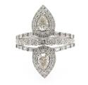 A diamond ring set with two pear-shaped brilliant-cut diamonds weighing a total of app. 0.66 ct. encircled by numerous baguette and brilliant-cut diamonds weighing a total of app. 1.45 ct., mounted in 18k white gold. W. app. 25 mm. Size 52.5.