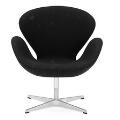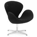 “Svanen”. Hvilestol med helstøbt, profileret stel af aluminium med drejefunktion. Sæde, sider og ryg betrukket med sort uld. Model 3320. Formgivet 1958. Udført og mærket hos Fritz Hansen.