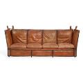 Stor fire-personers Knole sofa, betrukket med sømbeslået og patineret cognacfarvet skind, nedklappelige sider, sæde med fire løse hynder. England, 19. årh.s slutning. L. ca. 260.