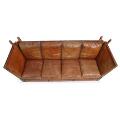 Brugsslitage. Ridser og mærker. Skind med enkelt hul på hynde. Ene side med afknækket top, denne medfølger. Trænger til rengøring under hynder. Manglende søm. Front med reparation.